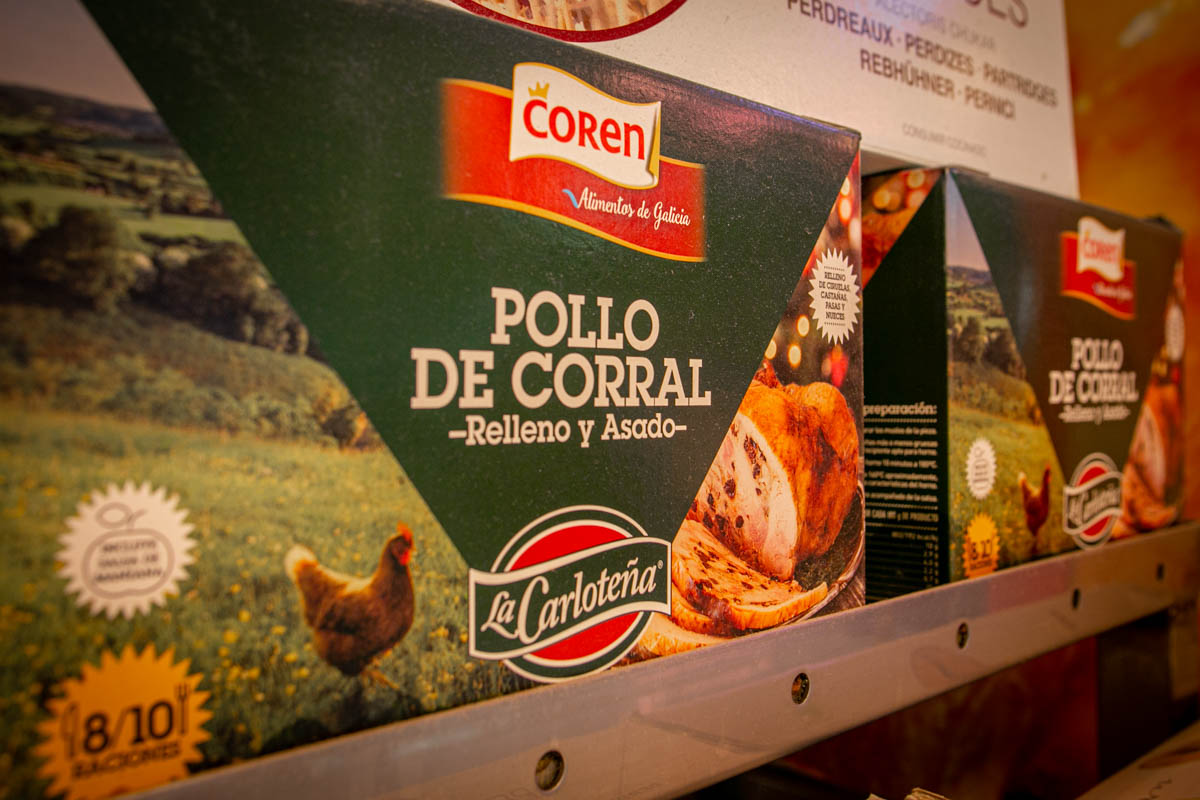 Y especialidad en pollos gallegos de corral “COREN” (muslos, filetes de corral.)